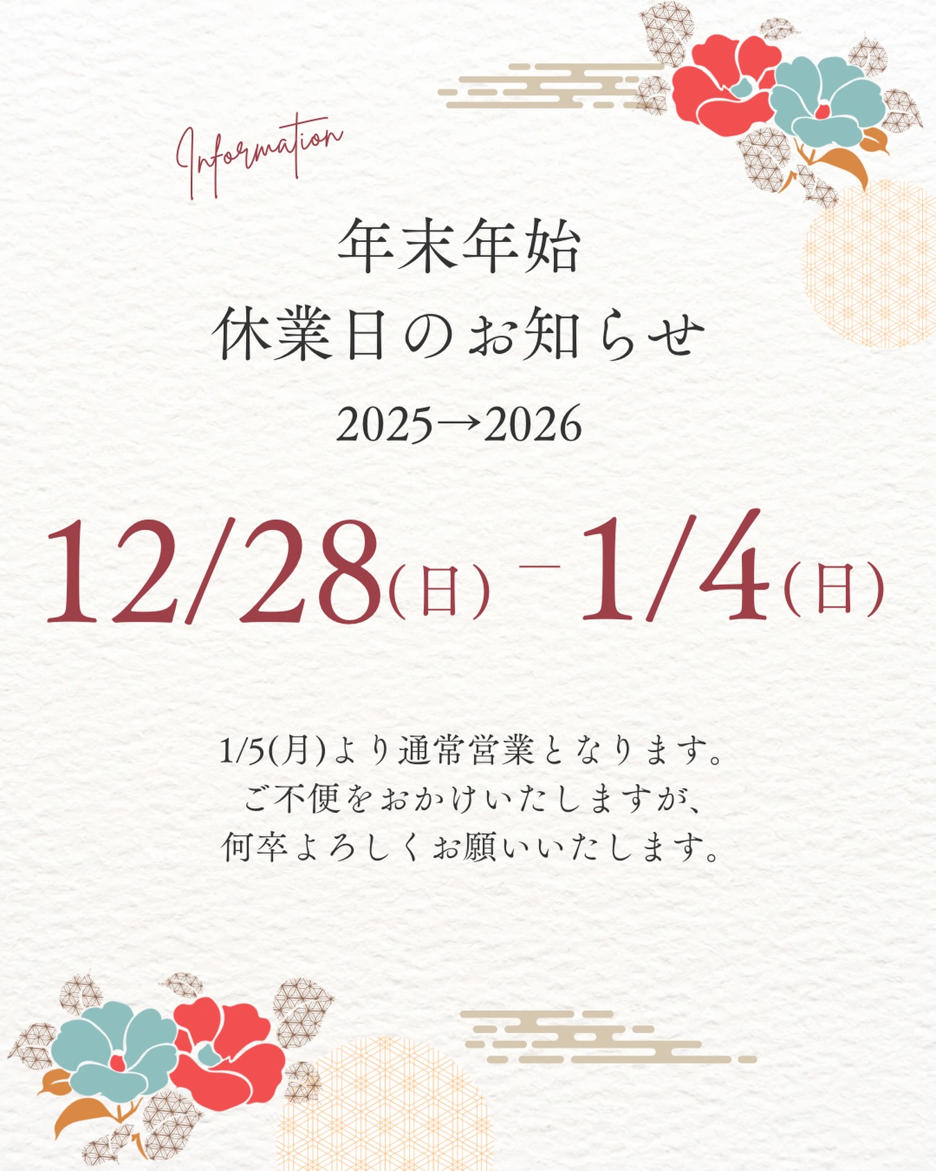 🎍年末年始の休館お知らせ🎍